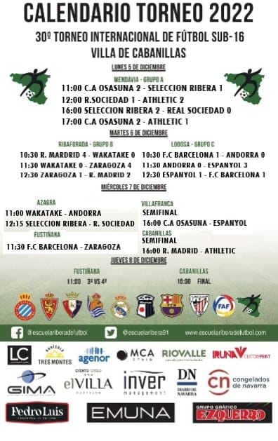 Recordad que mañana hay cambio de horario en Lodosa y Ribaforada, se disputan todos los partidos por la mañana debido a la coincidencia con el partido de la Selección Española en el mundial de Catar. Empezamos a las 10:30 h. en las dos sedes.