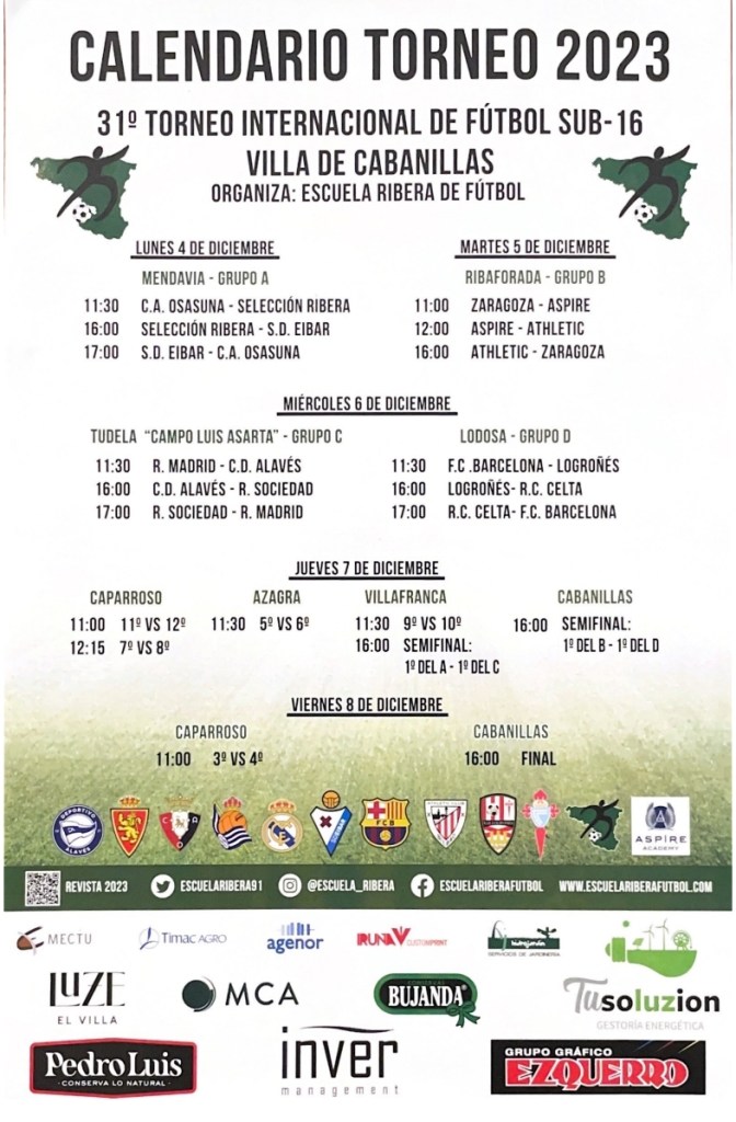 CARTEL 31 TORNEO DE FÚTBOL INTERNACIONAL SUB16 VILLA DE CABANILLAS Publicado el noviembre 21, 2023 por escuelariberafutbol Aquí os dejamos el cartel. Os esperamos a todos en los campos de fútbol. Compártelo Haz clic para compartir en X (Se abre en una ventana nueva) X Haz clic para compartir en Facebook (Se abre en una ventana nueva) Facebook Haz clic para compartir en X (Se abre en una ventana nueva) X Me gusta Cargando... Relacionado