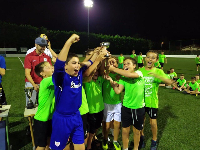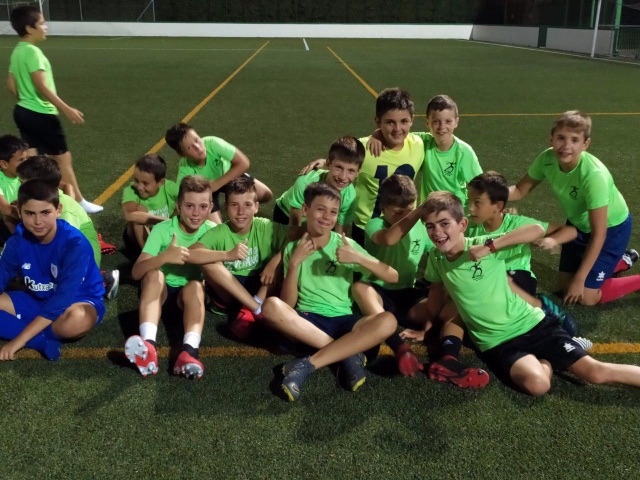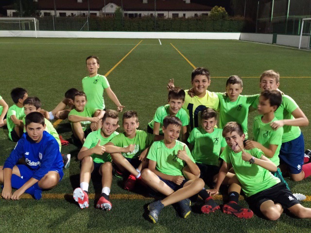 Después de cenar, venia el plato estrella del día, la famosa Champions. Ilusión, esfuerzo, trabajo en equipo….todo en una noche especial en el campo de Lesaka. Con bastante afluencia de publico local que animaba a nuestros chavales sin parar.