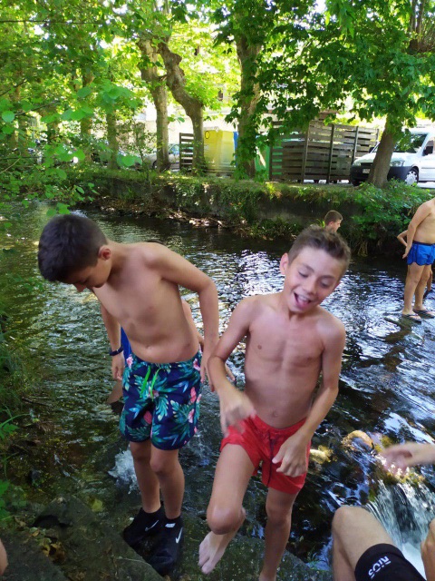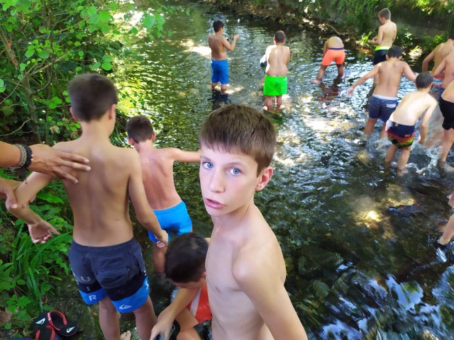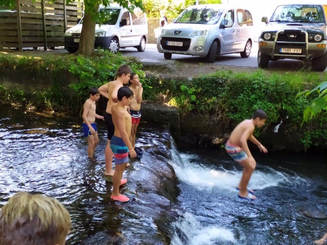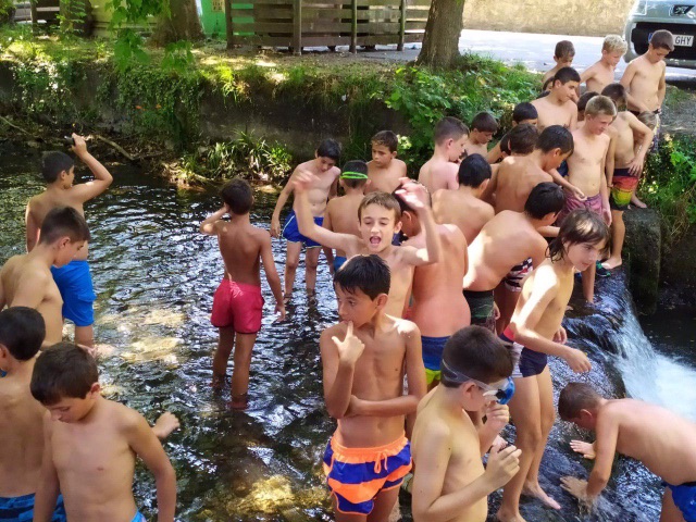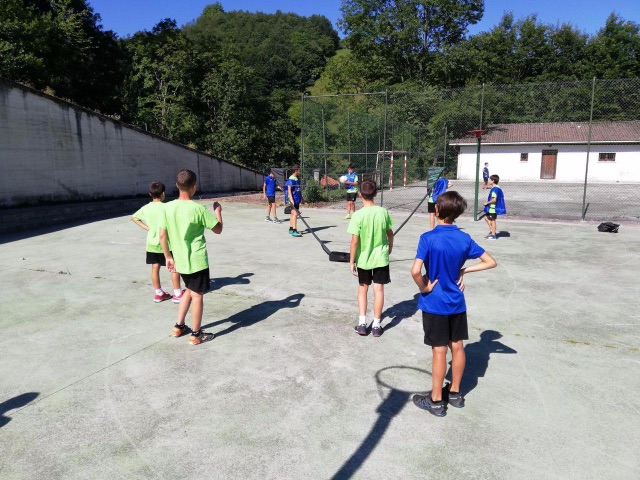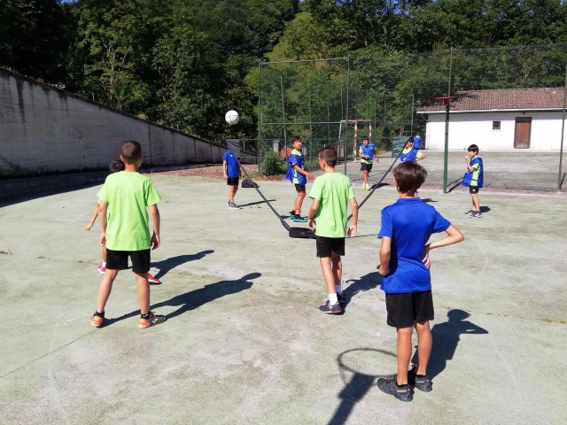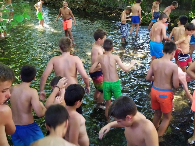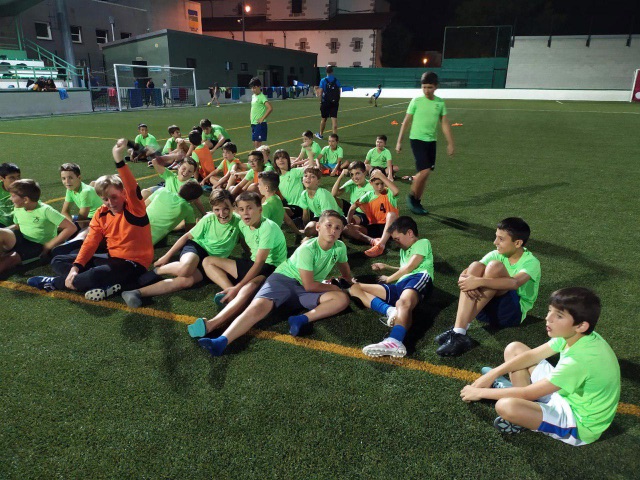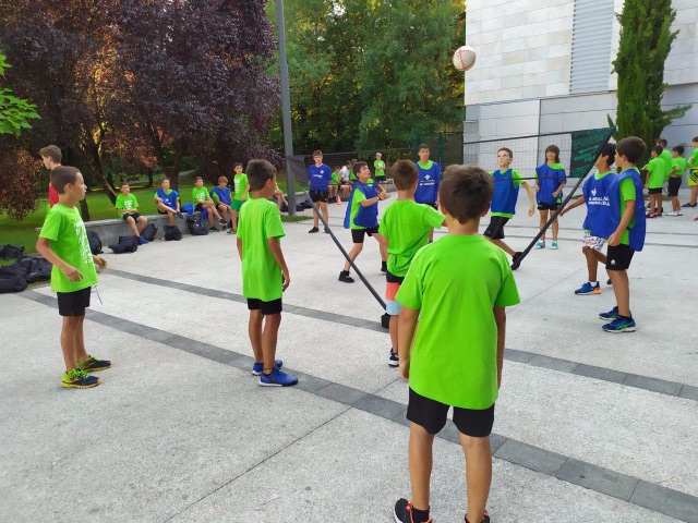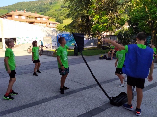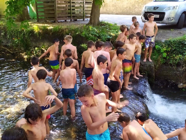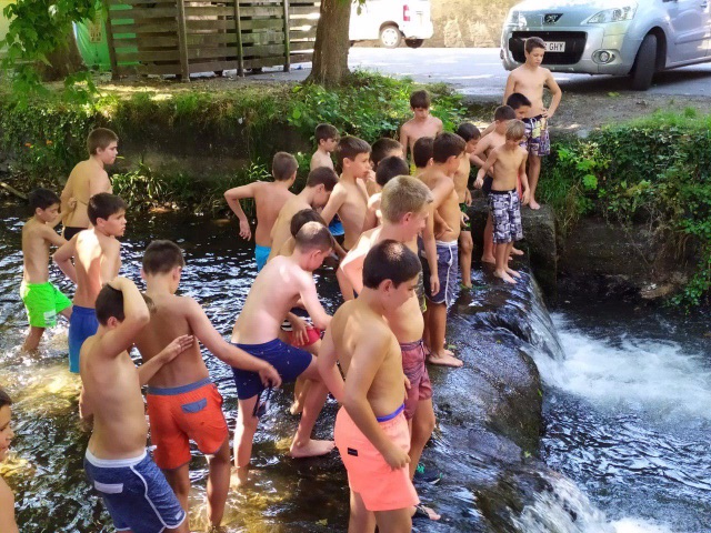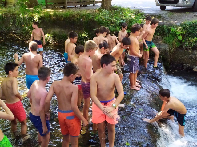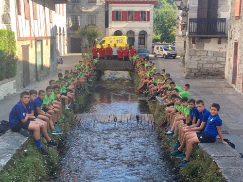 Para empezar, hoy volvíamos a entrenar en el campo después del día de playa de ayer. Y a los juegos de Olimpiada. Hacia calor en Lesaka lo que hemos aprovechado para refrescarnos en el rio en una zona tranquila para que los chavales pudieran estar cómodamente.