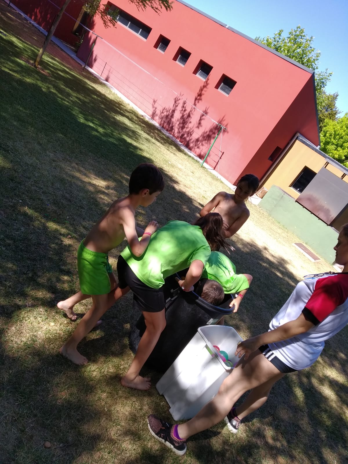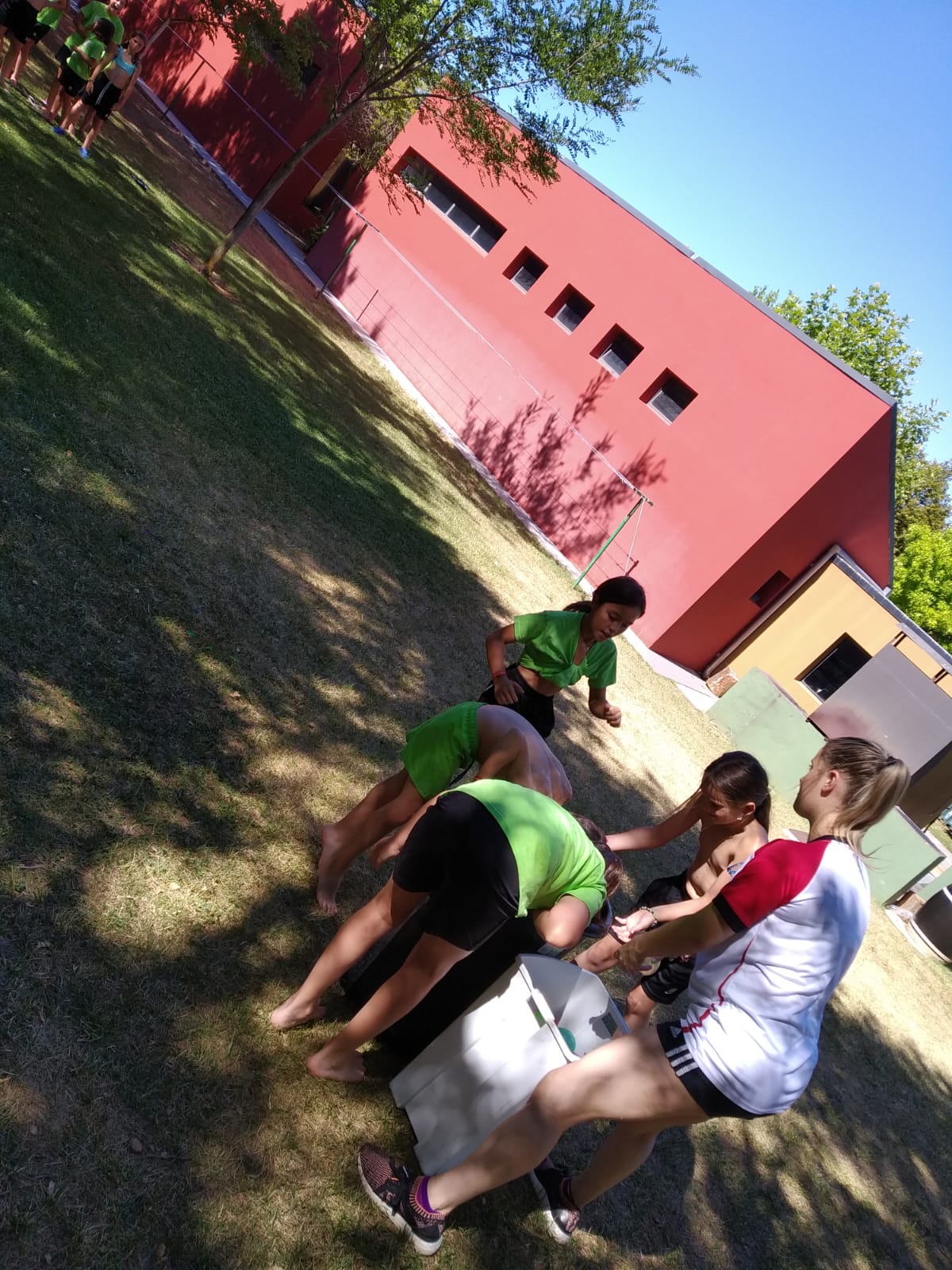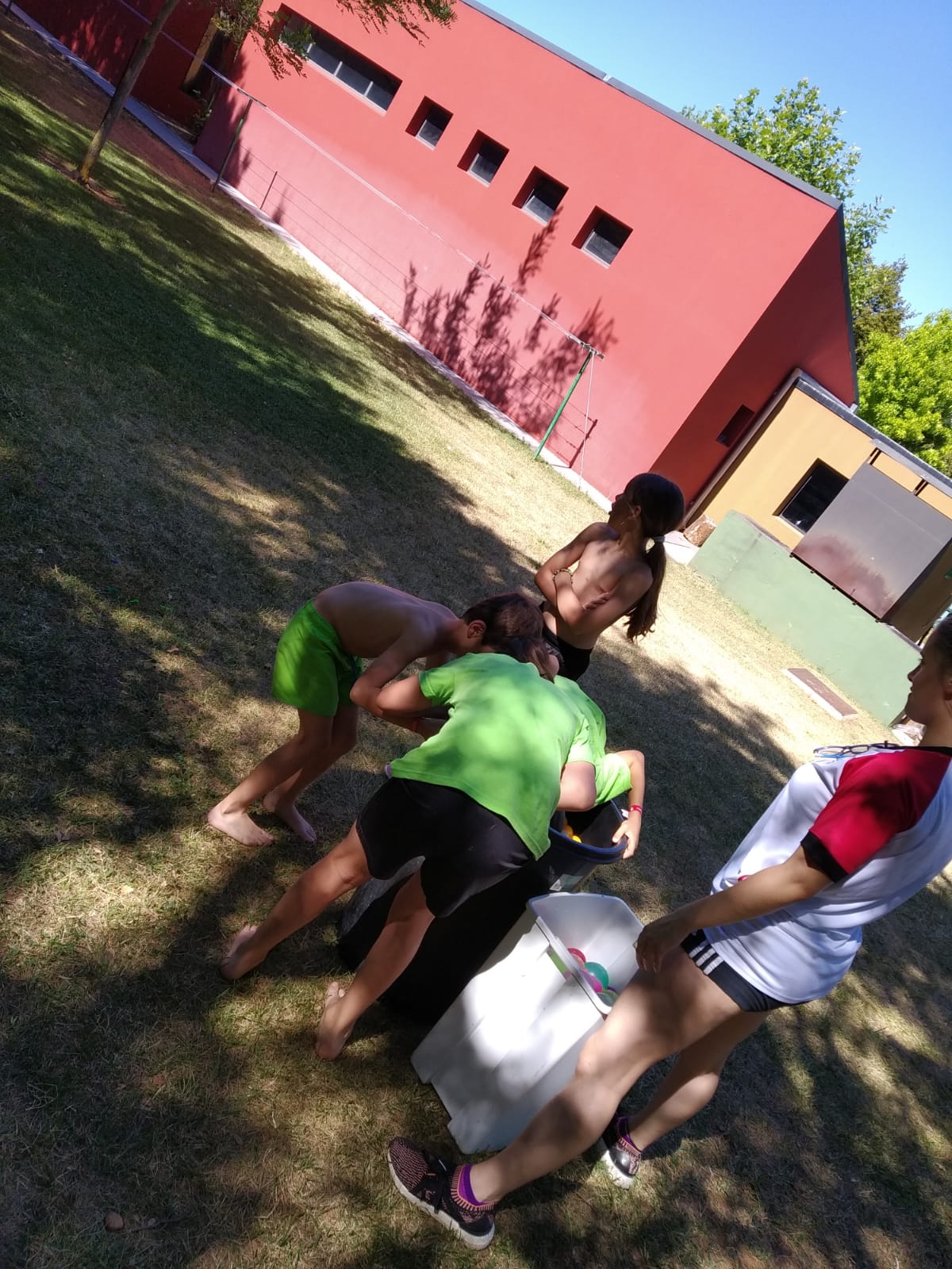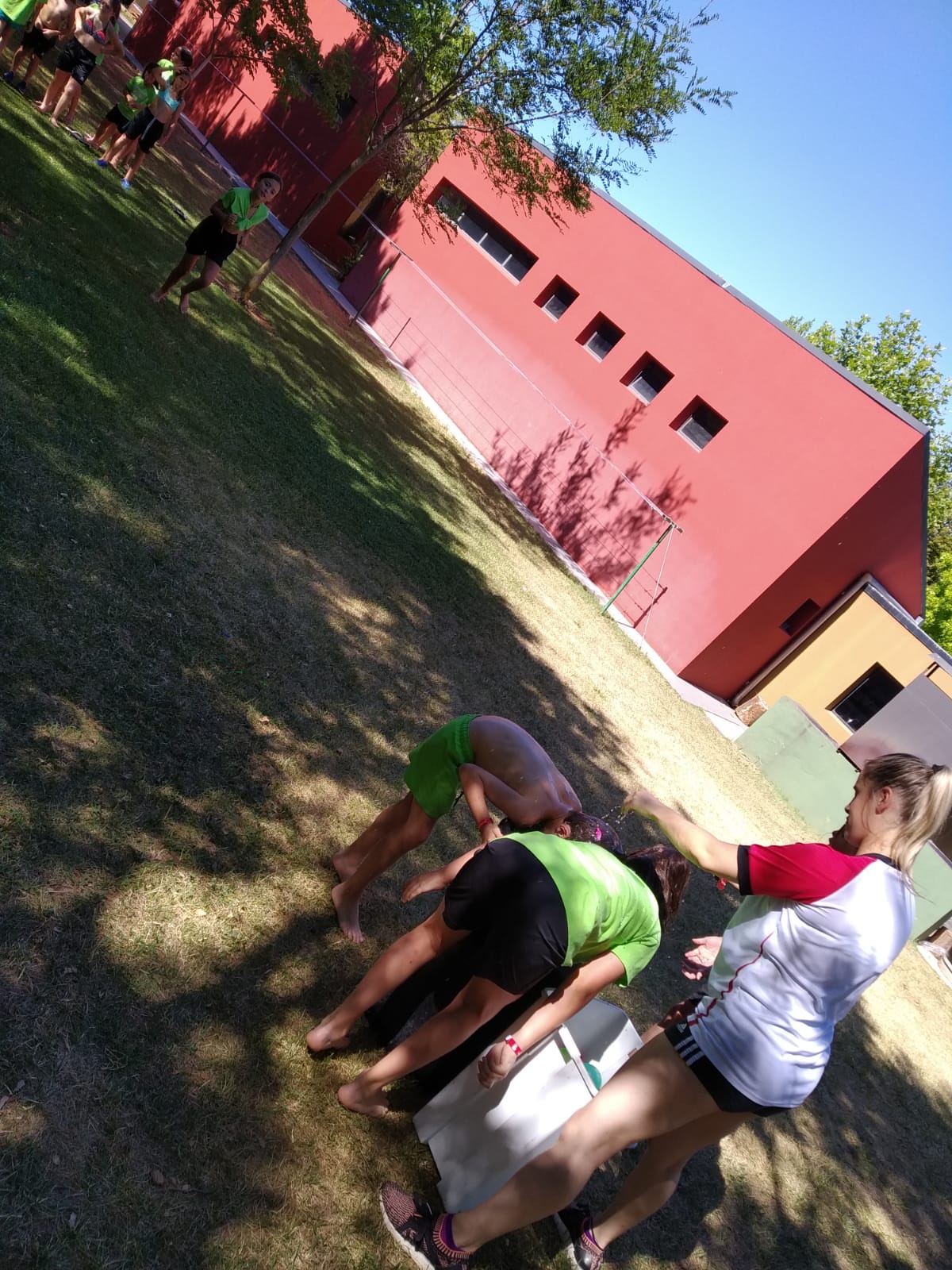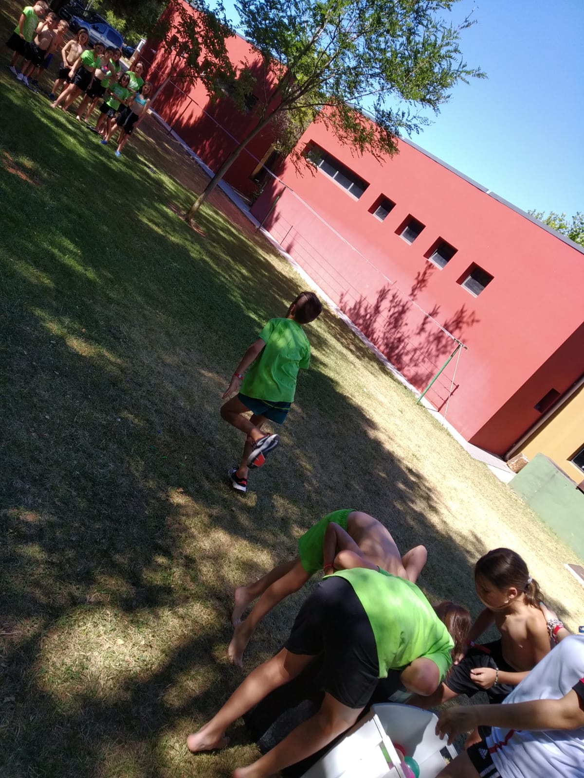 Ayer tuvimos entrenamiento por la mañana, más piscina, para aprovechar y refrescarnos un poco. Por la tarde, tuvimos juegos con Esther y Miren durante las horas de más calor y cuando mejor se estaba, jugamos los partidos de la tarde, para acabar en la piscina y disfrutar de un buen rato.