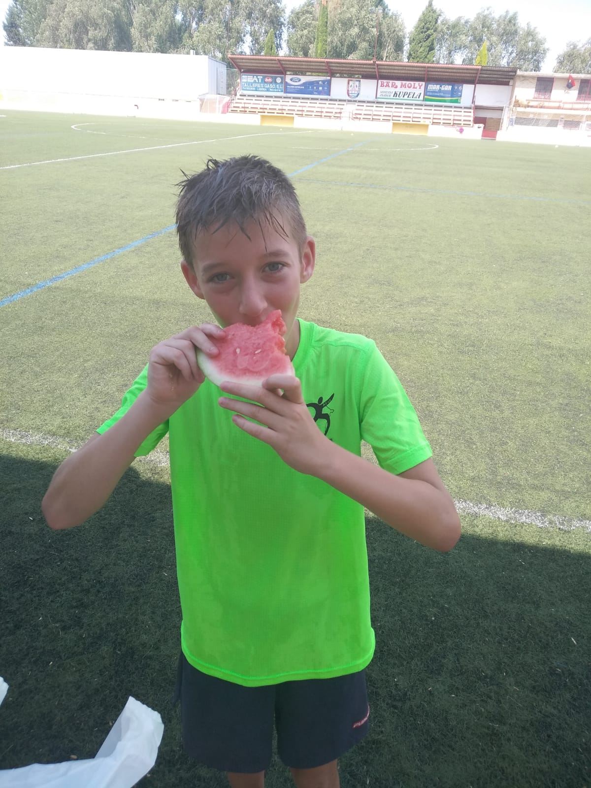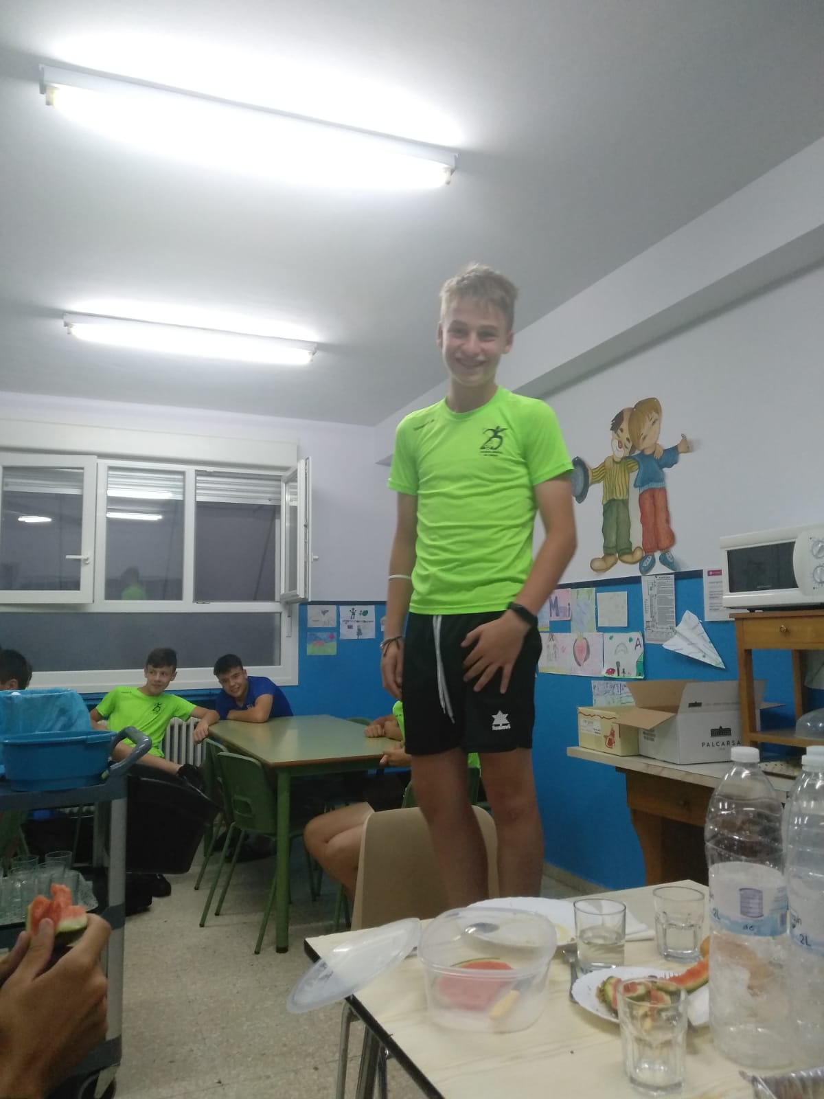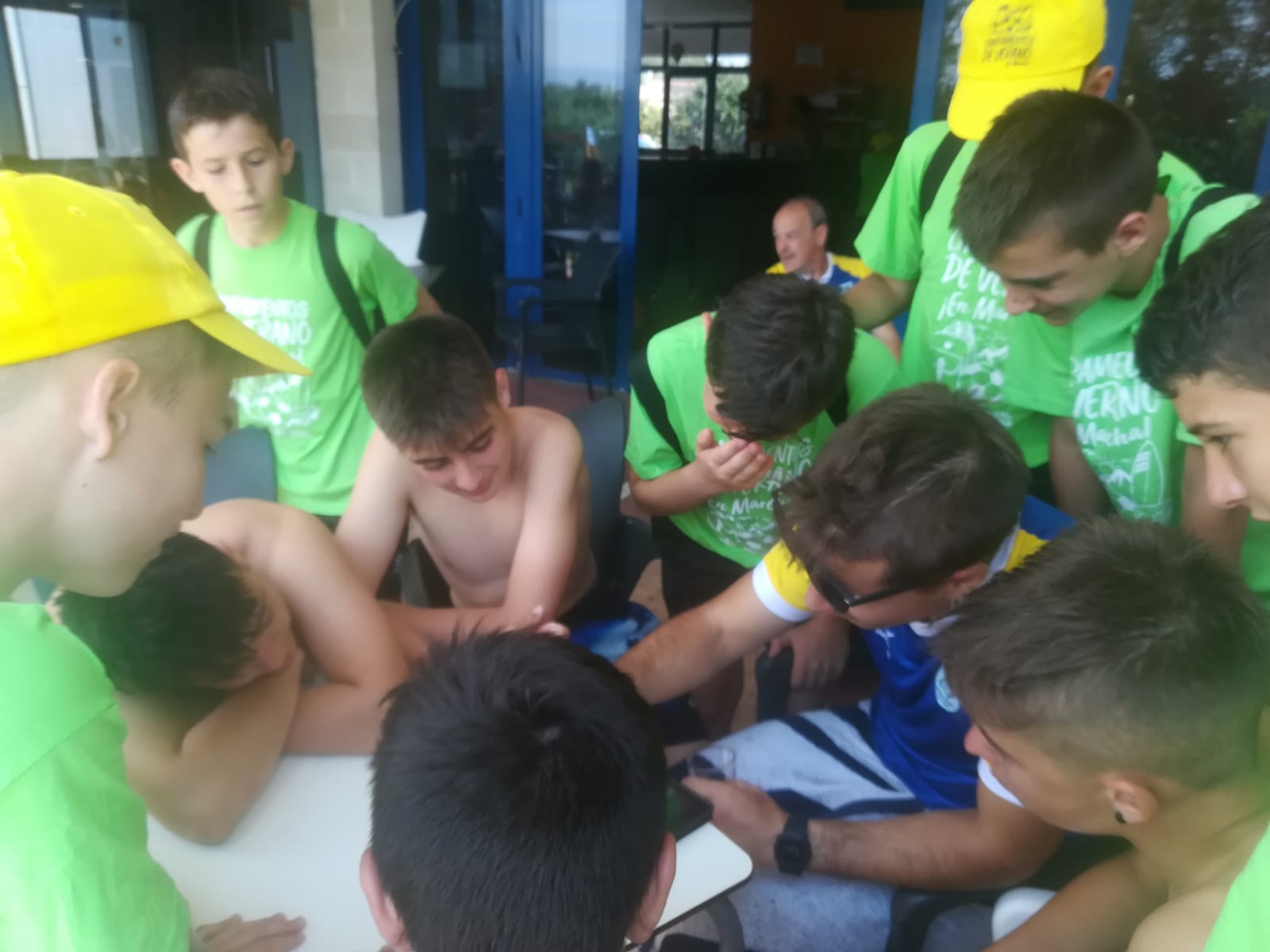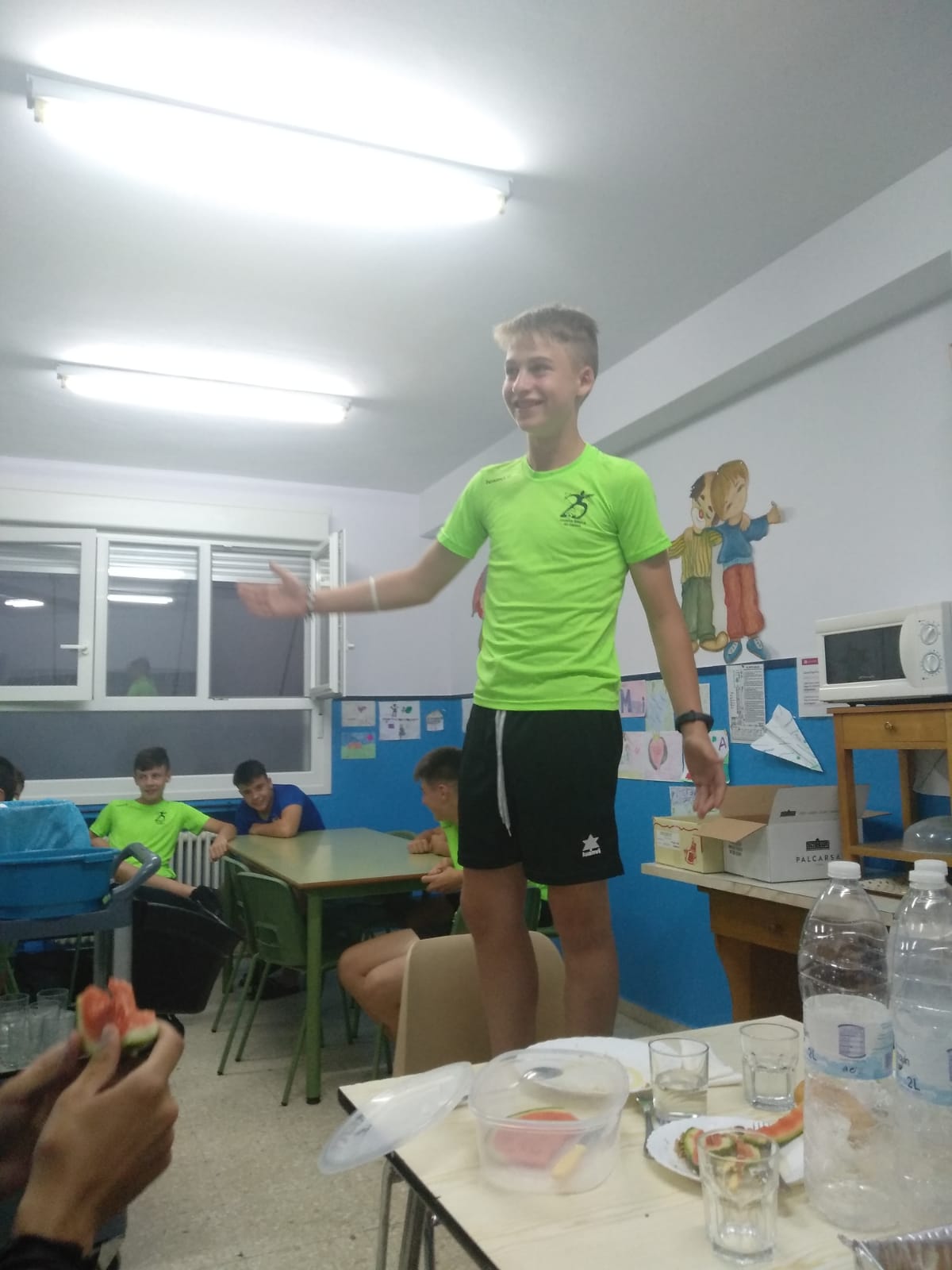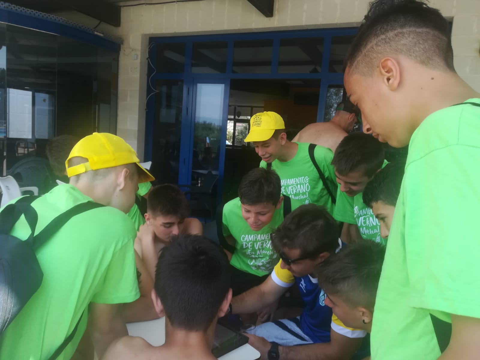 Ayer fue un buen día! Por la mañana tuvimos entrenamiento y piscina, lo que disfrutamos!!! Por la tarde juegos en el colegio para evitar el calor sofocante de las primeras horas de la tarde y después tuvimos una actividad donde intentamos que los chavales vieran los valores que genera el deporte.