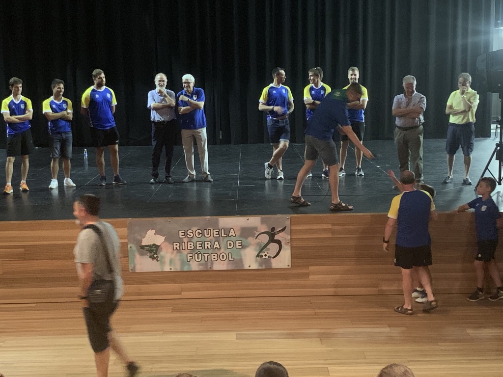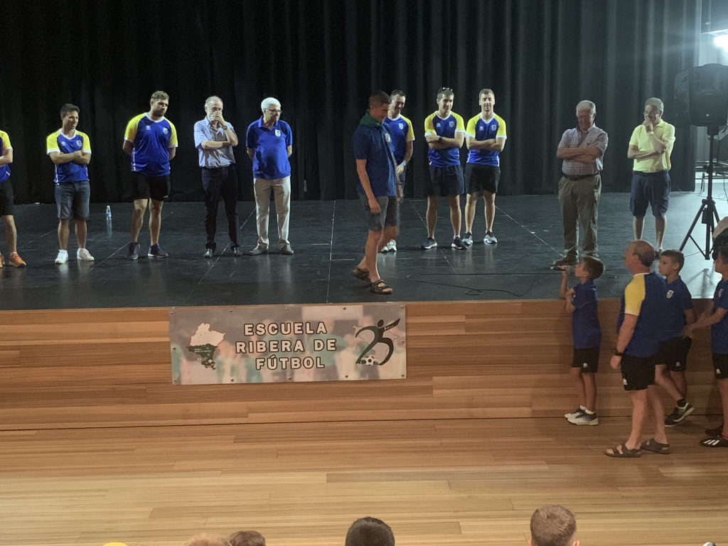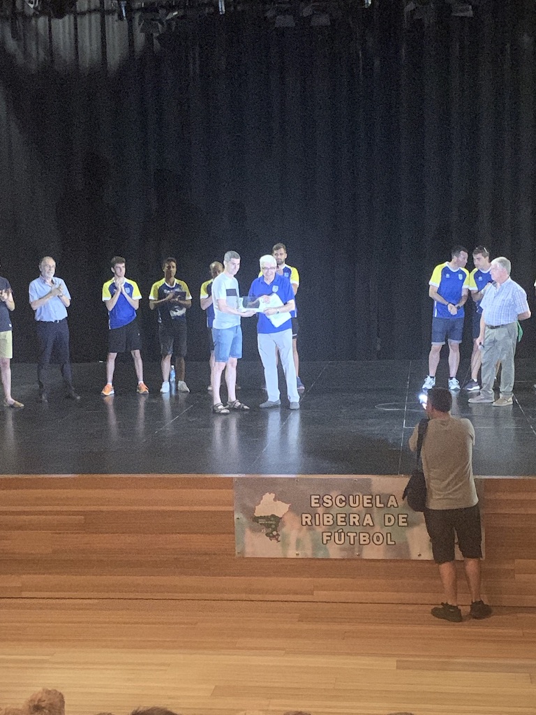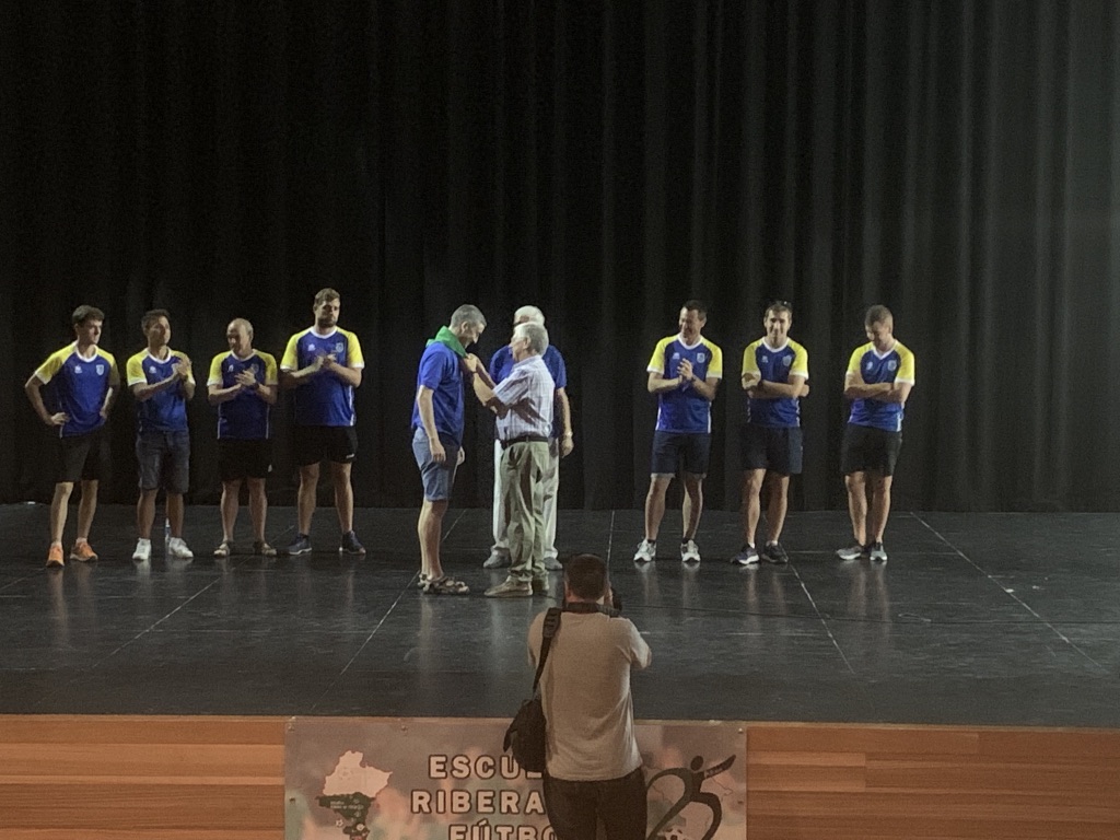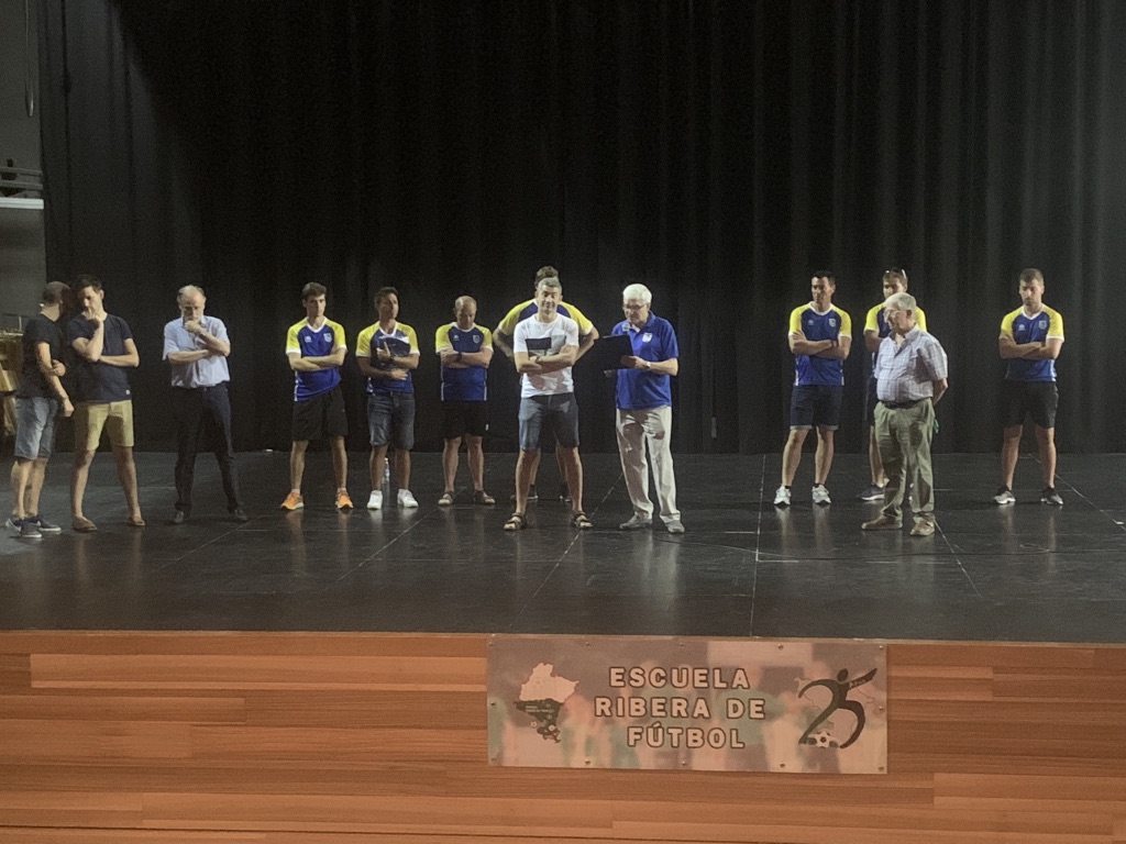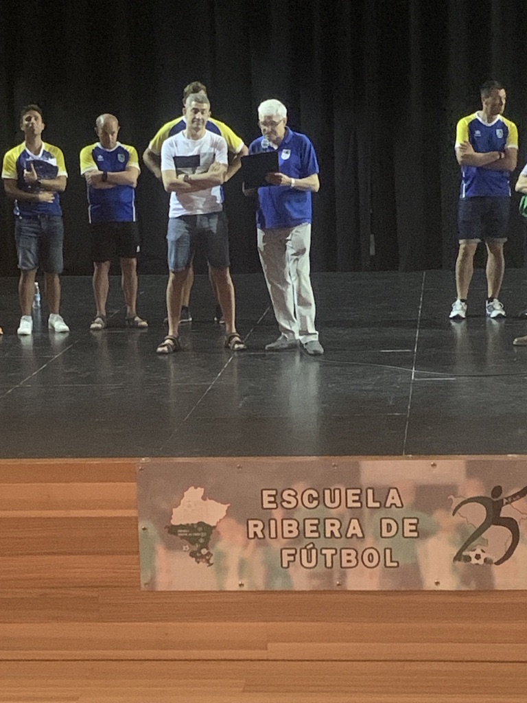 Después de los partidos en el campo, hemos tenido la visita de Alberto Undiano Mallenco, al que la Escuela Ribera le ha rendido un merecido homenaje por su trayectoria nacional e internacional en el mundo del arbitraje profesional.