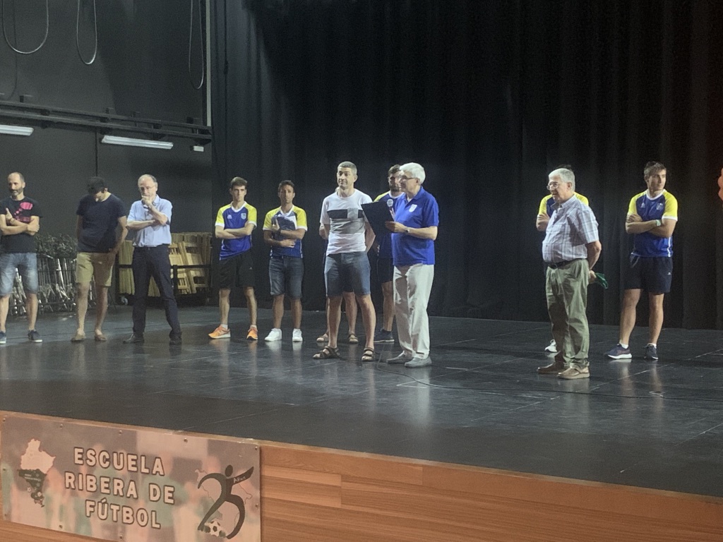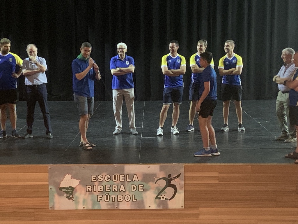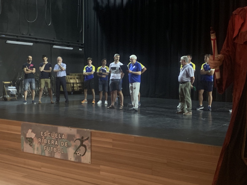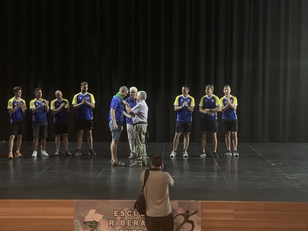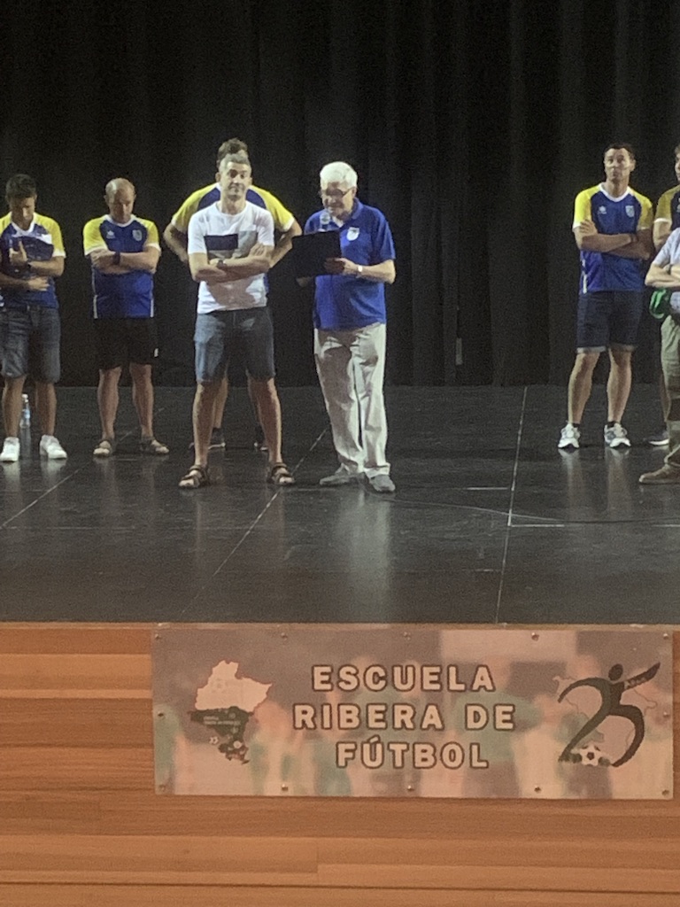 Después de los partidos en el campo, hemos tenido la visita de Alberto Undiano Mallenco, al que la Escuela Ribera le ha rendido un merecido homenaje por su trayectoria nacional e internacional en el mundo del arbitraje profesional.
