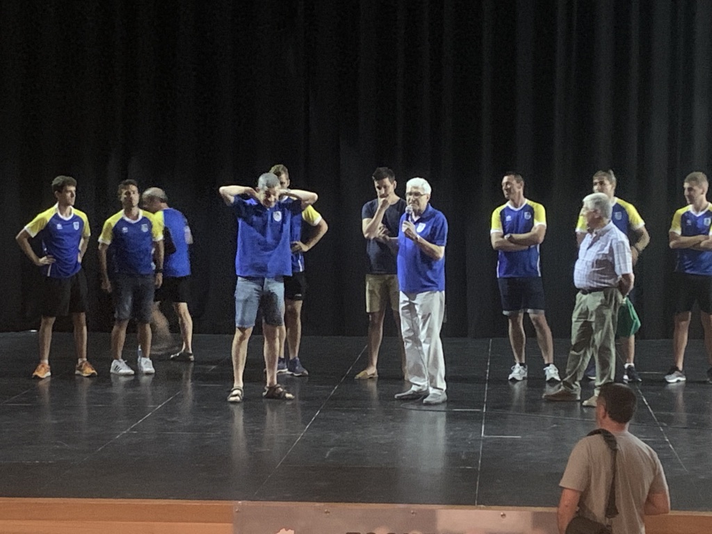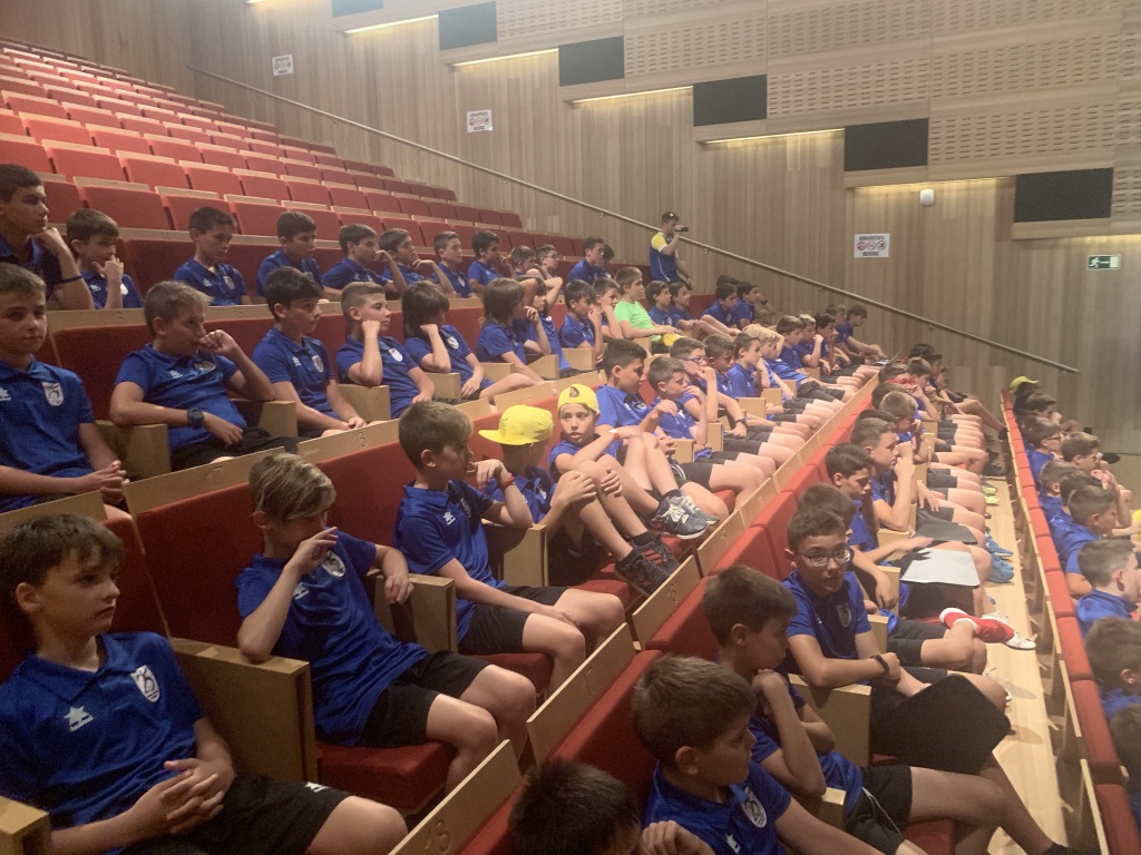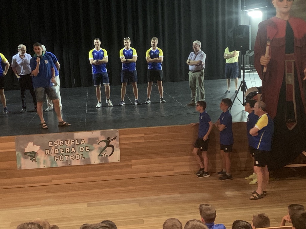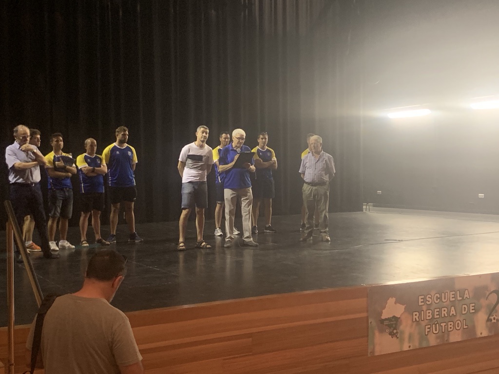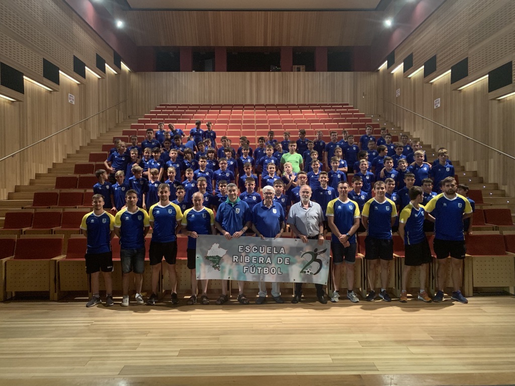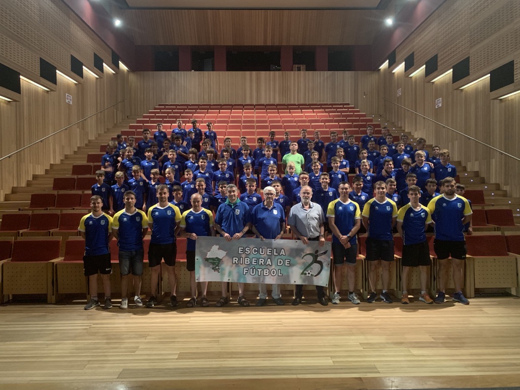 Después de los partidos en el campo, hemos tenido la visita de Alberto Undiano Mallenco, al que la Escuela Ribera le ha rendido un merecido homenaje por su trayectoria nacional e internacional en el mundo del arbitraje profesional.